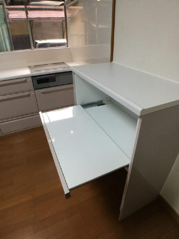 使い勝手の悪いキッチン使用のため、プランの相談を受けました。 I型キッチンにして、動線を短く使い易くしました。食洗機も付けて、レンジフードはお手入れしやすいタイプを選びました。引出しタイプにしたので、収納力も抜群で、さらにタカラのキッチンなので引出しの中もホーロー製です。お手入れがとてもしやすいです。